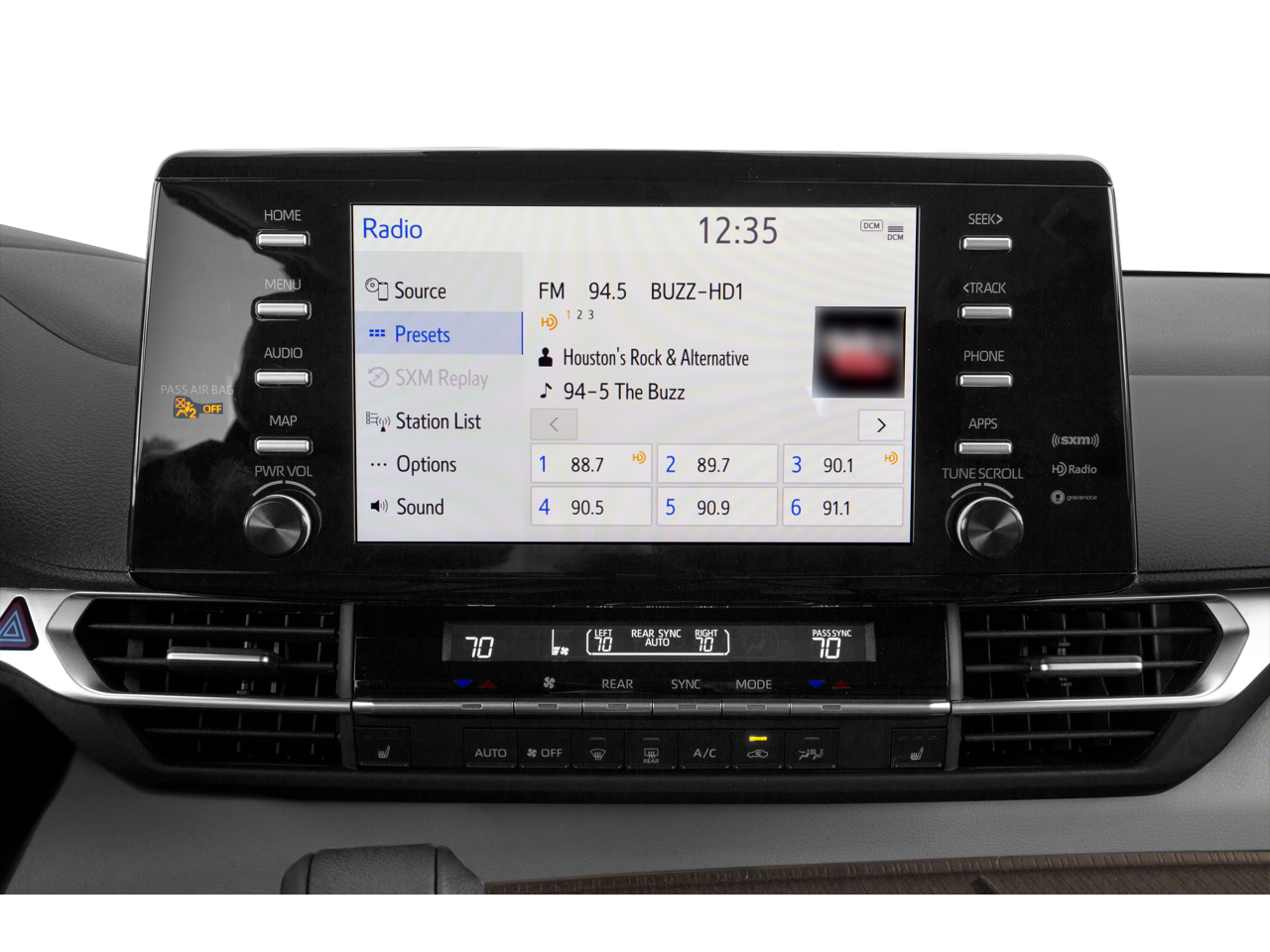 - Radio: Audio Plus -inc: 8 speakers, 9" touchscreen, USB media port, 6 USB charge ports, hands-free phone capability and music streaming via Bluetooth wireless technology, Android Auto, Apple CarPlay, Amazon Alexa compatibility, SiriusXM w/3-month All Access trial, Safety Connect w/1-year trial, Wi-Fi Connect w/up to 2 GB within 3-month trial and Service Connect w/10-year trial See toyota.com/audio-multimedia for details. See toyota.com/connect-services for details.